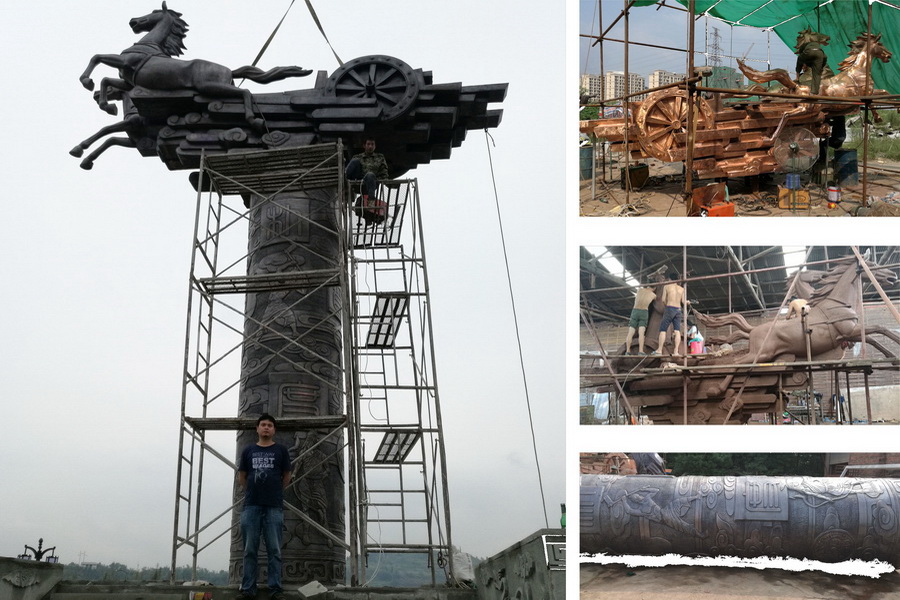 专业设计制作包括树脂,GRC,玻璃钢,泡沫,砂岩,锻铜,铸铜,不锈钢,紫铜锻造等各种材质雕塑。